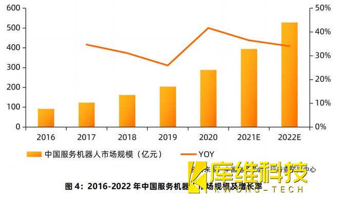 2021年我國服務機器人市場規模預計達到393.3億元,2016-2021年的年均復合增速達34%,市場規??傮w增速高于工業機器人。近年來,服務型機器人產品的消費需求不斷升級、消費群體日益擴大,C端市場應用滲透率不斷提升,預計2022年我國服務機器人的市場規模將達到500-550億元。