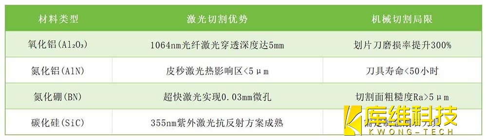 在陶瓷基板向??0.01mm級(jí)超薄化??、??2000孔/cm²超高密度??演進(jìn)的今天,激光切割憑借其??精度無(wú)損、效率躍遷、成本可控??的三重優(yōu)勢(shì),正成為高端制造的主流選擇。建議企業(yè)在5G基站、車(chē)規(guī)芯片等關(guān)鍵領(lǐng)域率先布局激光切割技術(shù)。
