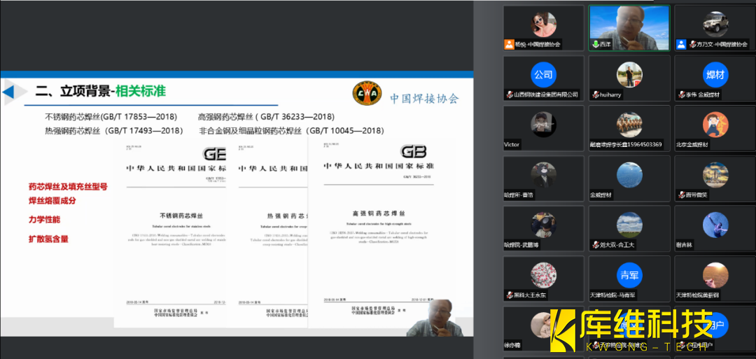 焊接協會召開了線上團體標準宣貫會,會議由中國http://www.92wangjiazhu.cn/business/content1.html協會副秘書長方乃文主持。會議邀請了上海電機學院材料連接與界面工程研究所副所長劉西洋副教授就T/CWAN 0042—2020 《藥芯焊絲制備工藝及質量評價規范》團體標準進行了宣貫解讀。線上共有30多家單位40余位代表參加了宣貫會。