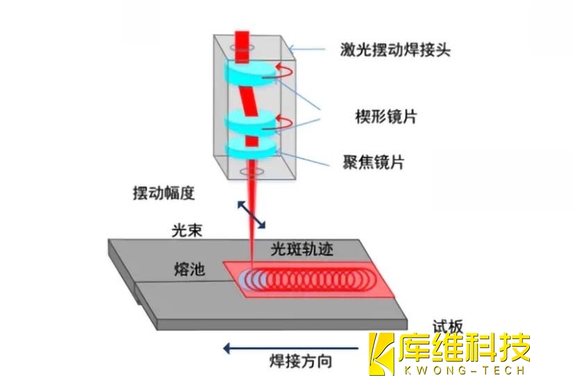 激光擺動焊接是通過快速而精確地擺動激光束,覆蓋整個焊接區域。光束在焊縫方向移動時,可以進行圓形、8字形、螺旋線等多種形式的擺動。這種擺動不僅有助于實現更均勻的加熱,還能有效減少焊接缺陷,如氣孔和裂紋。