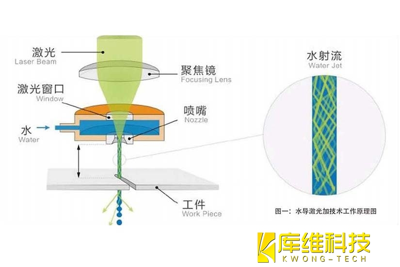 水導(dǎo)激光加工技術(shù)(WJGL)是一種混合加工方法,它將激光與“細(xì)如發(fā)絲”的水射流相結(jié)合,以類(lèi)似于傳統(tǒng)光纖的方式通過(guò)全內(nèi)反射精確引導(dǎo)激光束,水射流可以持續(xù)冷卻切割區(qū)域并有效地清除碎屑。作為一種“清潔、受控的冷激光技術(shù)”,WJGL技術(shù)解決了干式激光加工技術(shù)存在的重大問(wèn)題,如熱損傷、污染、變形、碎屑沉積、氧化、微裂紋、錐度和精度低。實(shí)現(xiàn)對(duì)玻璃、陶瓷、藍(lán)寶石等脆性材料的精密切割,還能夠去除材料表面的油墨、PVD 等,為脆性材料的精細(xì)加工及表面處理帶來(lái)了極大便利,進(jìn)一步拓寬了激光切割技術(shù)在不同材料加工領(lǐng)域的應(yīng)用范圍。