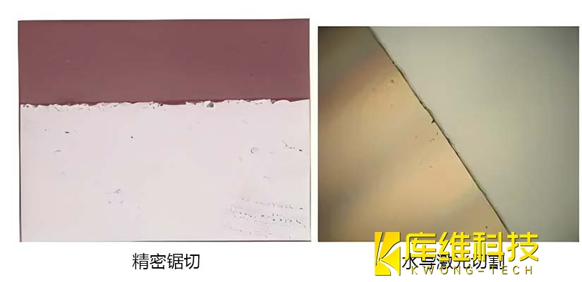 1、精密鋸切和水導激光切割砷化鎵(GaAs)晶片的前表面質量對比