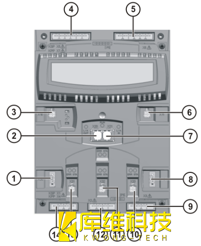 注意:KPP 的重量約為 10 kg. 在 KPP 的拆裝工作中存在擠傷危險!請戴防護(hù)手套5. 將新的 KPP 插進(jìn)殼體支撐角鐵 (3)里,然后將其上部掛入角鐵并擰緊(擰緊扭矩 4 Nm)6. 按照插頭和線纜說明將所有接口插入. 將插頭 X20 和 X21 鎖緊.