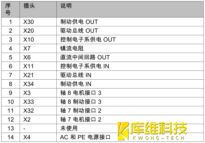 警告:若將機(jī)器人控制系統(tǒng)關(guān)斷,下列部件仍可能在長達(dá) 5 分鐘的時間內(nèi)帶電 (50 … 780 V):