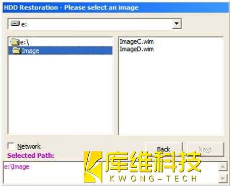 注意:只能選擇單個 WIM 文件,例如為分區 C: 選擇 Custom15C.WIM。當一個對應的 WIM 文件以相同名稱被保存,例如為分區 C: 選擇Custom15C.WIM,則將自動恢復兩個分區。
