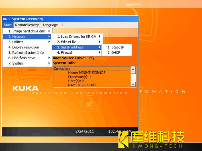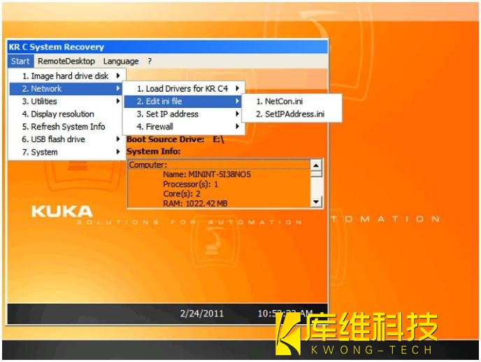 2. 插上具有起動功能的庫卡 U 盤,然后重啟工業機器人控制系統。