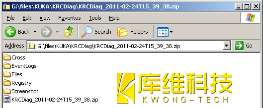 文件 它將生成一個名為 KRCDiag_[ 日期 ]T[ 鐘面時間 ].zip 的壓縮文件,然后存放在路徑 C:\KUKA\KRCDiag\ 之下。另還可將該文件直接保存到一個存儲盤里。