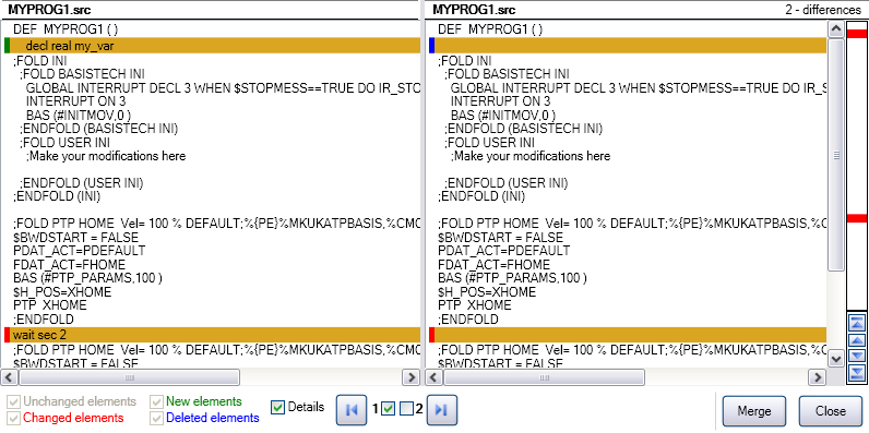 2. 選擇需與當前 WorkVisual 項目作比較的項目,例如實際機器人控制系統上的同名項目。